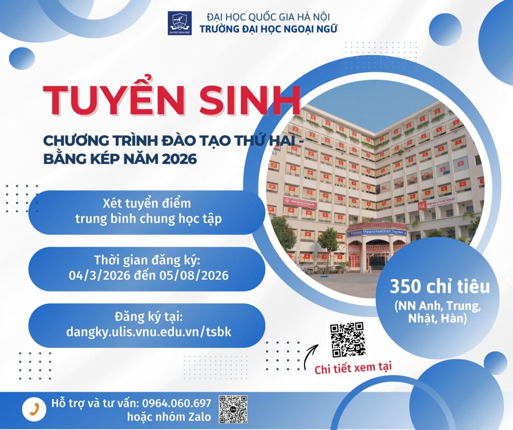 [Thông báo] Tuyển sinh chương trình đào tạo thứ 2 bằng kép năm 2025 Th3 30, 2026 in Thông báo 📢 Chi tiết thông báo >> Xem tại đây! Tagged with: CTĐT thứ 2, Thông báo, Tuyển sinh, Tuyển sinh bằng kép