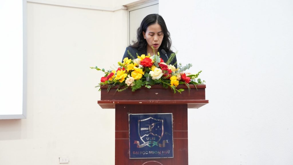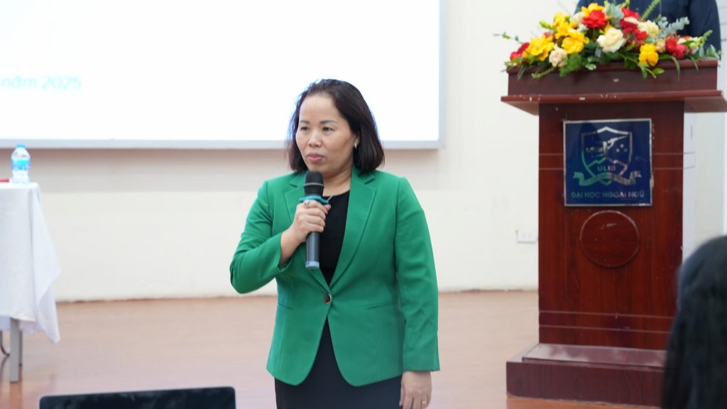 Tiếp theo, đồng chí Nguyễn Thị Hợp đã đại diện Ban Chấp hành Công đoàn Khoa NN&VH Anh trình bày Báo cáo tổng kết nhiệm kỳ 2022 – 2025 và phương hướng hoạt động trong nhiệm kỳ 2025 – 2030. Báo cáo nhấn mạnh Công đoàn Khoa đã phát huy tốt vai trò là cầu nối giữa lãnh đạo và cán bộ, giảng viên, người lao động trong Khoa; quan tâm chăm lo đời sống vật chất, tinh thần cho đoàn viên; tích cực tham gia các phong trào thi đua, các hoạt động chuyên môn, văn hóa – văn nghệ, thể thao của Nhà trường. Trong phương hướng nhiệm kỳ tới, Công đoàn Khoa NN&VH Anh đặt mục tiêu tiếp tục đổi mới nội dung, phương thức hoạt động; tăng cường gắn kết giữa các tổ công đoàn; đẩy mạnh các phong trào thi đua gắn với nhiệm vụ chuyên môn; phát huy vai trò của tổ chức công đoàn trong việc xây dựng tập thể Khoa vững mạnh, góp phần thực hiện thắng lợi nhiệm vụ chung của Trường Đại học Ngoại ngữ.