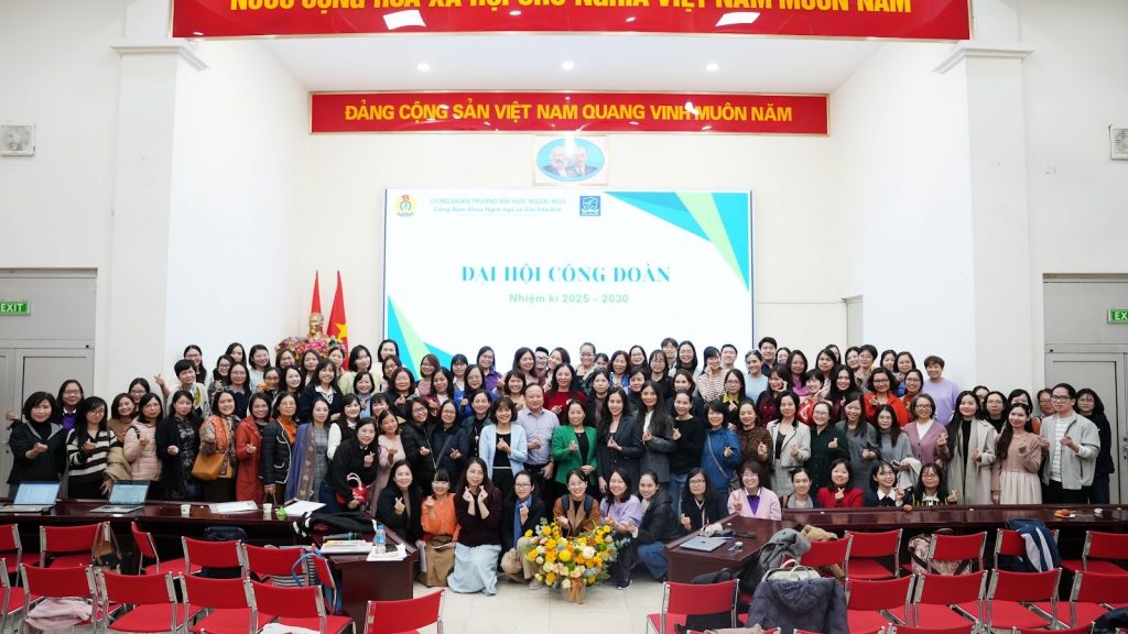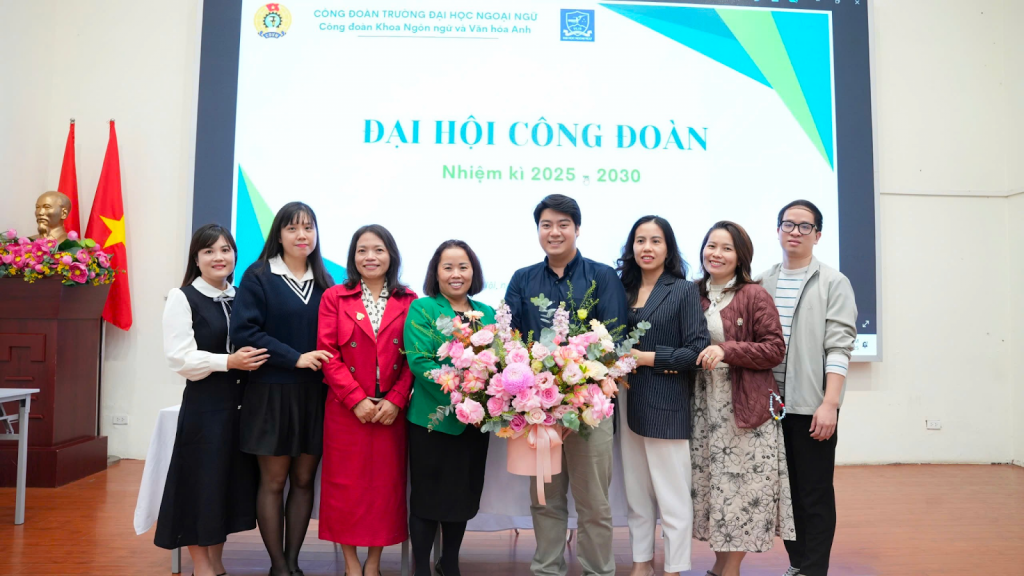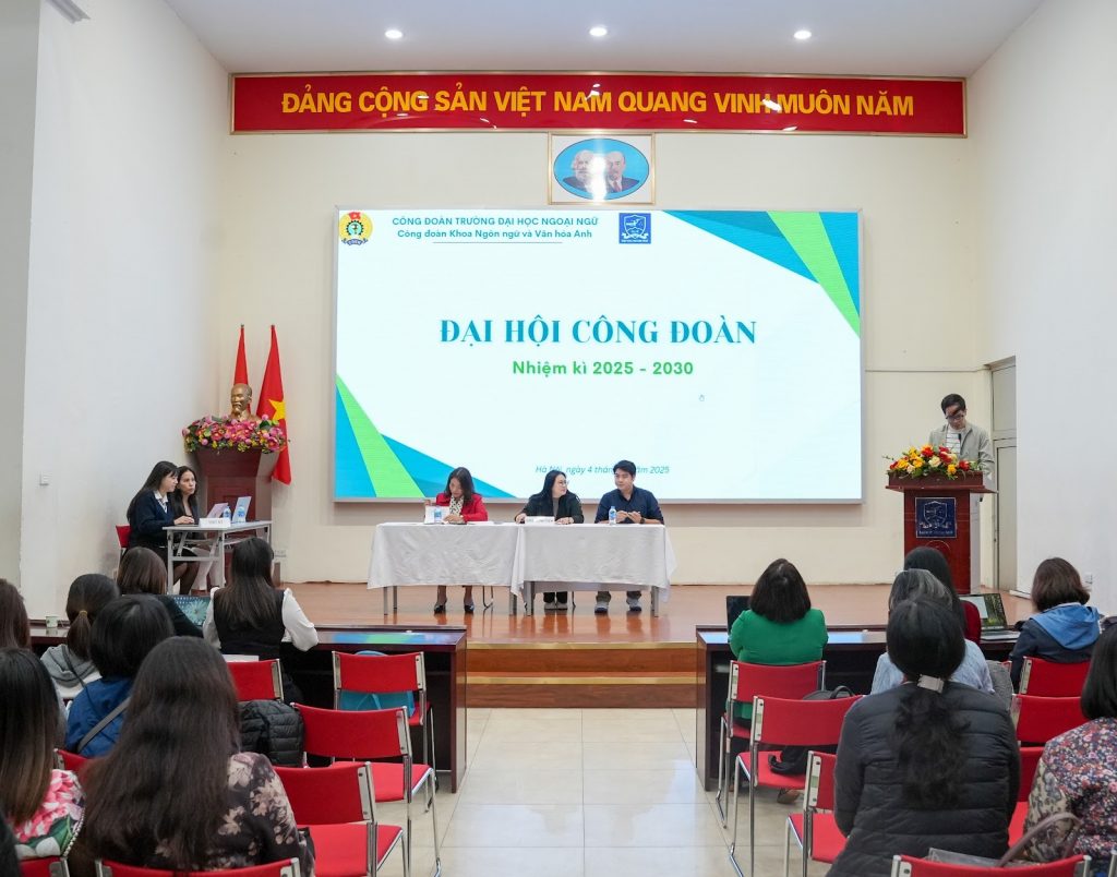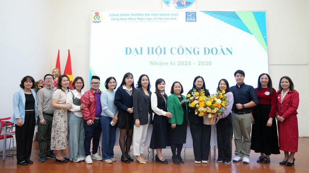 Ngày 04/11/2025, được sự chỉ đạo của Công đoàn Trường Đại học Ngoại ngữ – Đại học Quốc gia Hà Nội, Công đoàn Khoa Ngôn ngữ và Văn hoá Anh đã tổ chức thành công Đại hội Công đoàn nhiệm kỳ 2025 – 2030. Đại hội diễn ra nhằm đánh giá kết quả hoạt động của Công đoàn Khoa trong nhiệm kỳ 2022 – 2025, đề ra phương hướng hoạt động trong nhiệm kỳ 2025 – 2030 và bầu ra Ban chấp hành nhiệm kỳ 2025-2030.